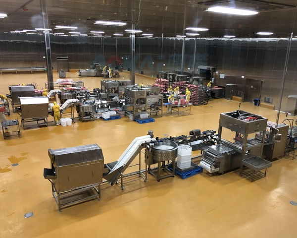 香肠自动包装生产线有以下机组连线:剪节机-拆线机-震动筛选机-预制袋自动装袋机-喷码机-真空封口机
