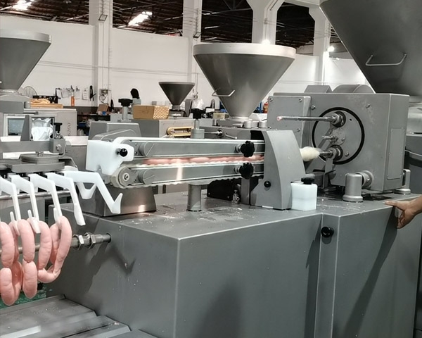 高速扭结机和灌装机联机实现自动化生产,各参数可以根据不同的香肠工艺进行设置。